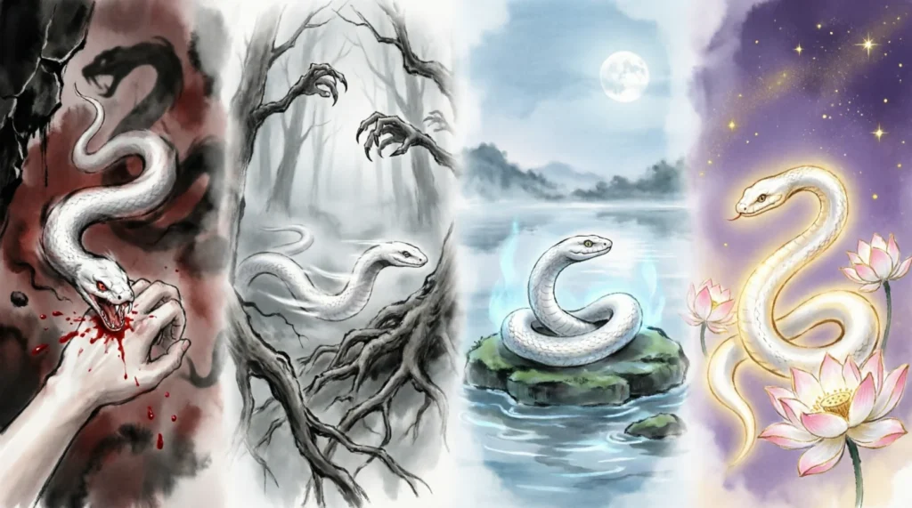 • Dreaming of a white snake biting you: This often means a sudden realization or emotional truth you’ve been avoiding is coming to the surface.